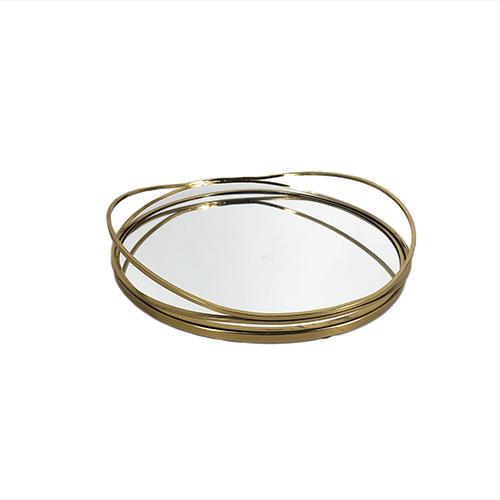 Bandeja espelhada dourada Ø30,5×5,5cm. Peça elegante e sofisticada para decorar mesas, aparadores e organizar objetos com charme e estilo.