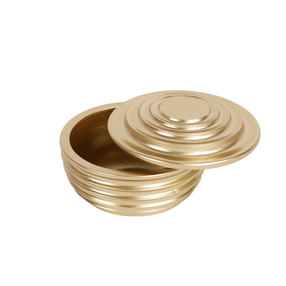 Caixa decorativa em resina dourada, elegante e funcional, ideal para organizar e decorar com sofisticação.