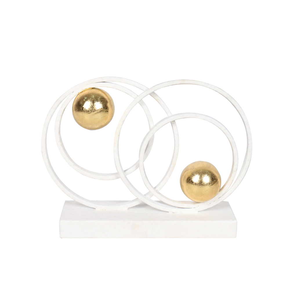 A Estatueta Dois Círculos em resina dourada é uma peça decorativa que traduz modernidade e elegância em um design geométrico marcante. Composta por dois círculos interligados, simboliza equilíbrio e harmonia, agregando valor estético a diversos ambientes.