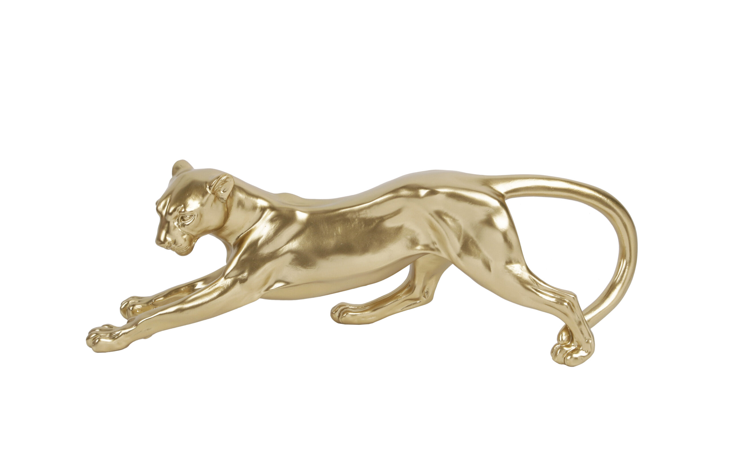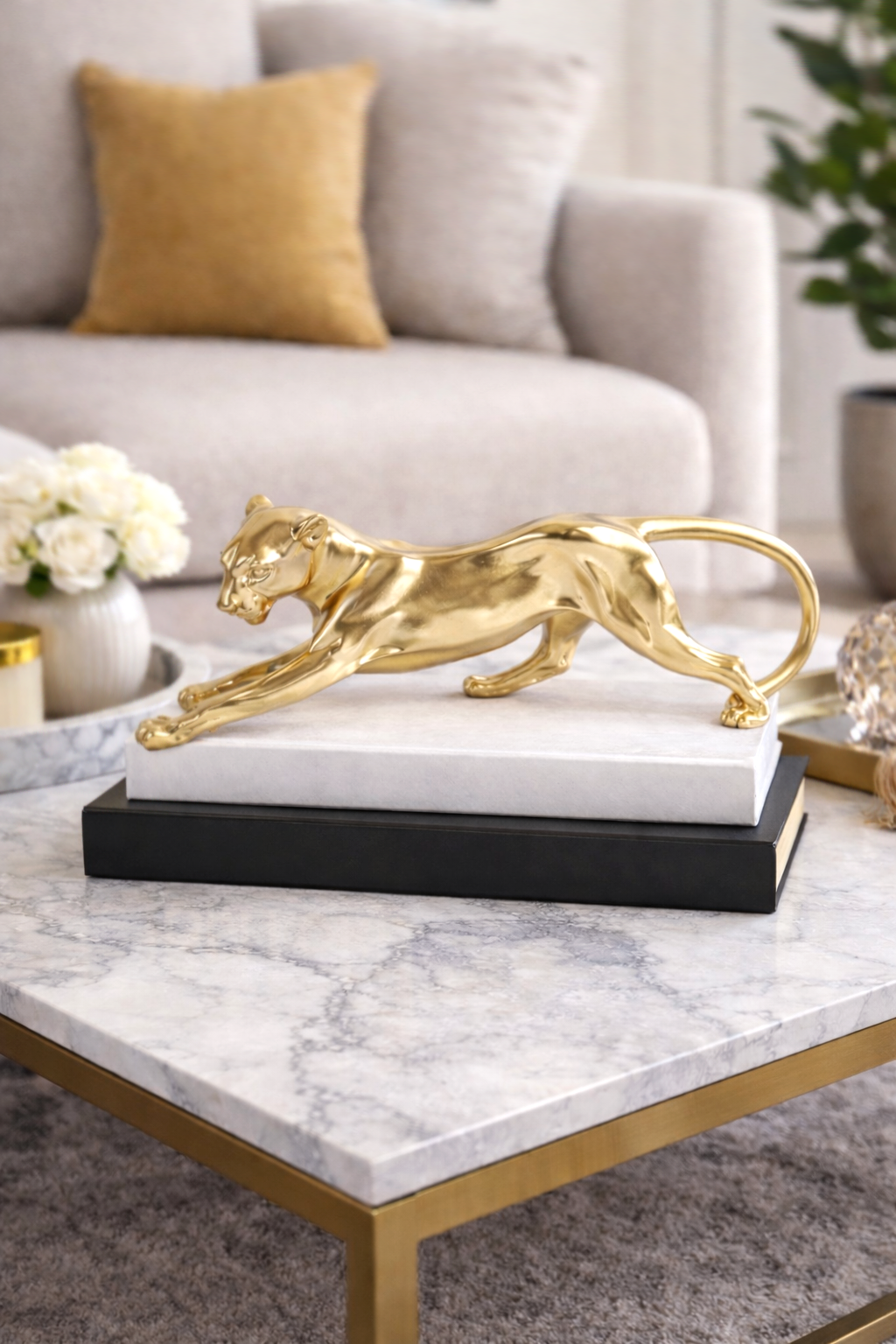 A Estatueta Pantera é uma peça decorativa de presença marcante, que transmite força, elegância e sofisticação. Produzida em resina com acabamento dourado, seu design alongado e moderno valoriza qualquer ambiente com estilo e imponência.