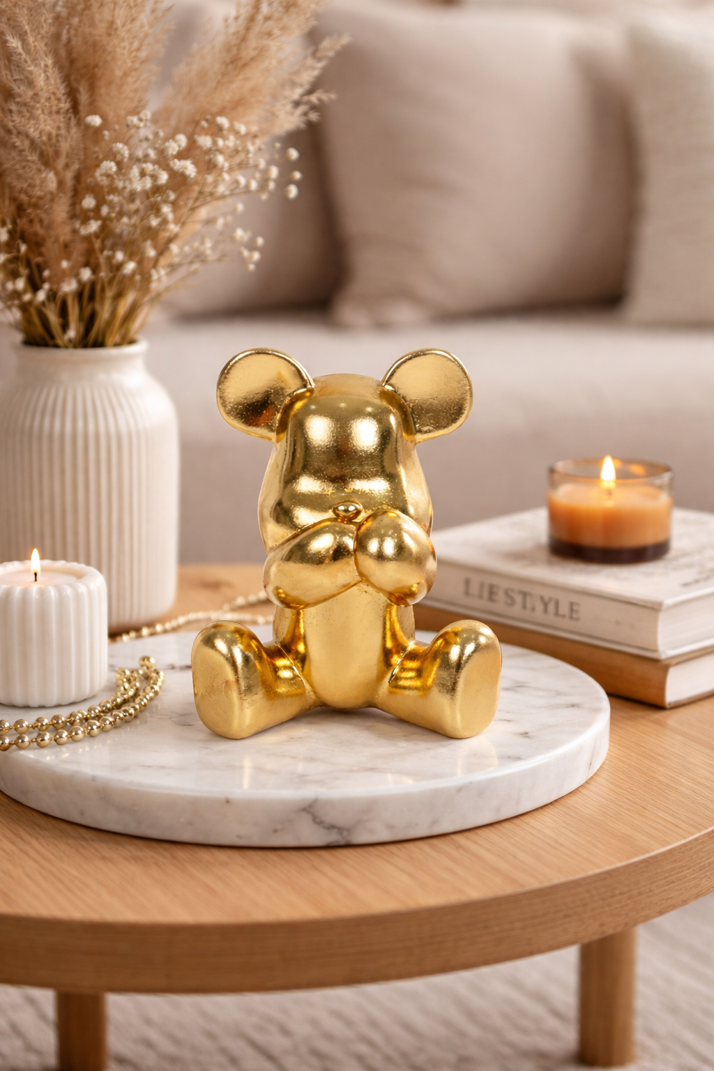 A Estatueta Urso Mudo é uma peça decorativa cheia de personalidade, que combina design moderno com um toque lúdico. Produzida em resina com acabamento dourado, ela traz sofisticação e destaque para qualquer ambiente.