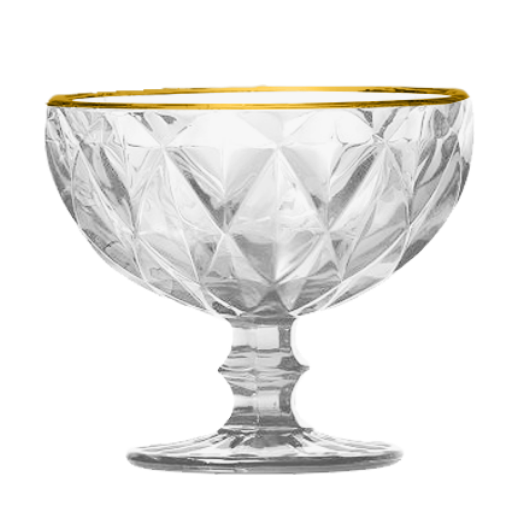 O Jogo com 6 Taças Diamond da Zahav traz sofisticação e brilho para a mesa. Com um design facetado que remete ao corte de diamantes e acabamento com filete dourado na borda, essas taças são perfeitas para valorizar momentos especiais ou compor vitrines elegantes. Ideal para lojas de presentes, decoração e utilidades finas.