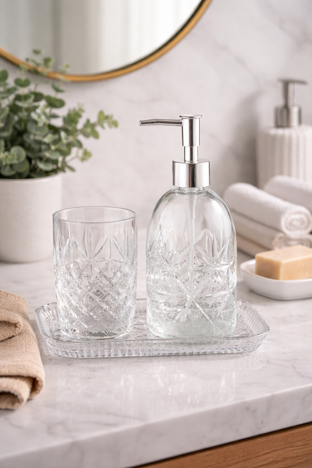 O Kit para Banheiro com 3 peças é a escolha ideal para quem busca organização aliada a um visual clean e sofisticado. Produzido em vidro transparente, valoriza a decoração com leveza e elegância, adaptando-se facilmente a diferentes estilos de ambiente.